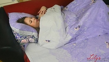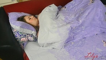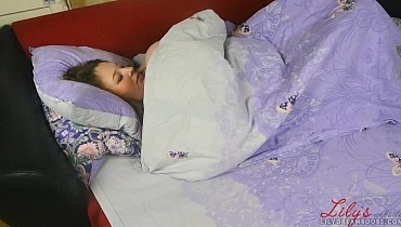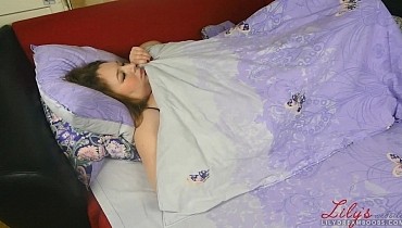Laying and soft touching boobs