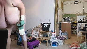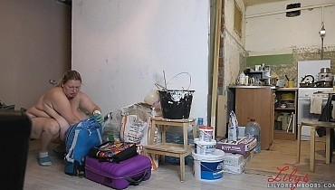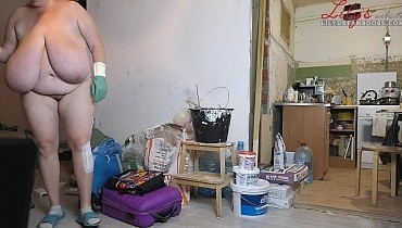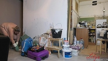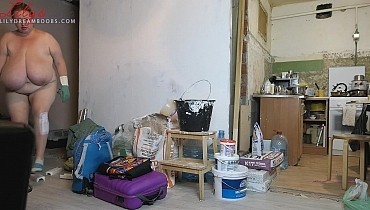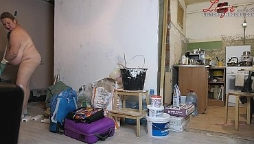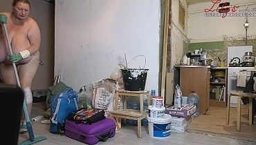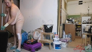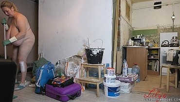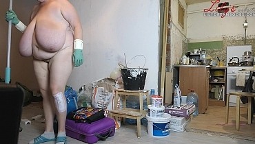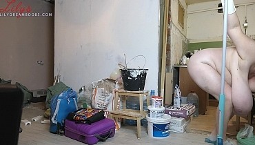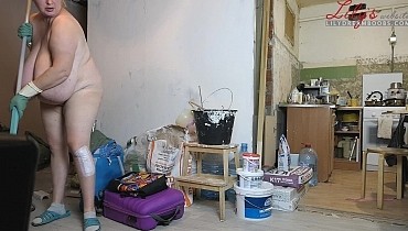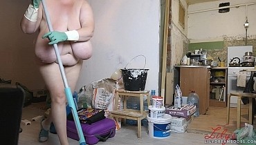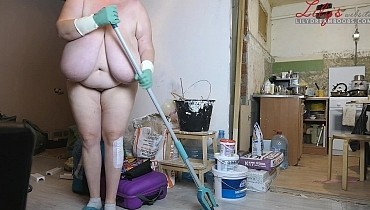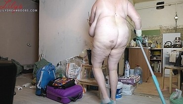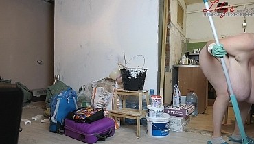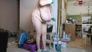 Nudist cleaning home