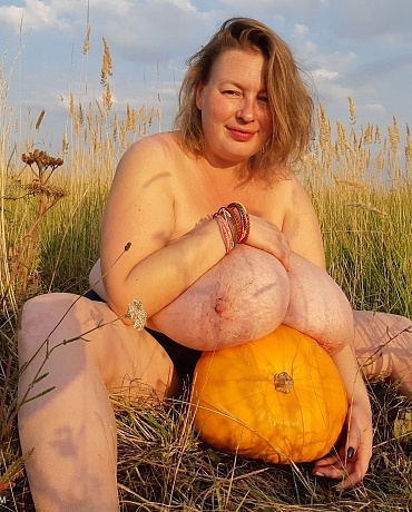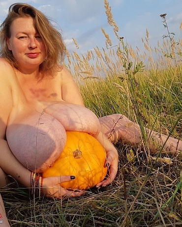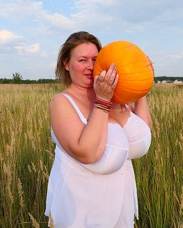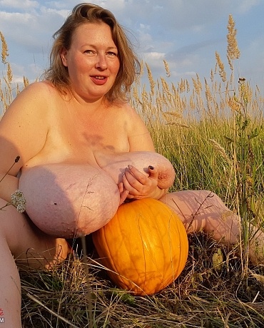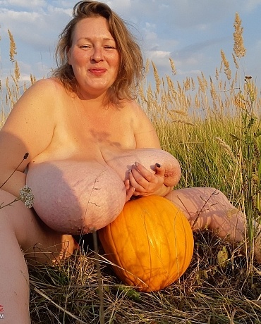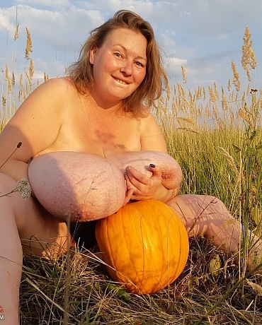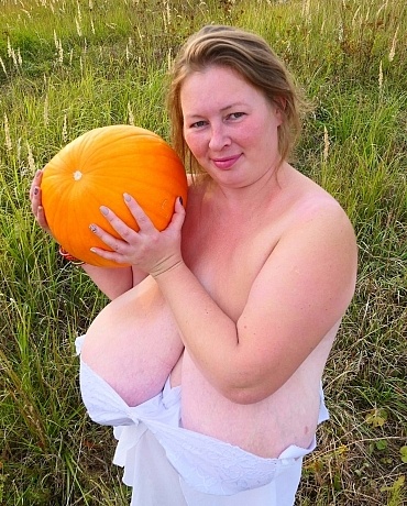 Outside with pumpkin