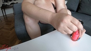 Painting my toenails bright red 4K